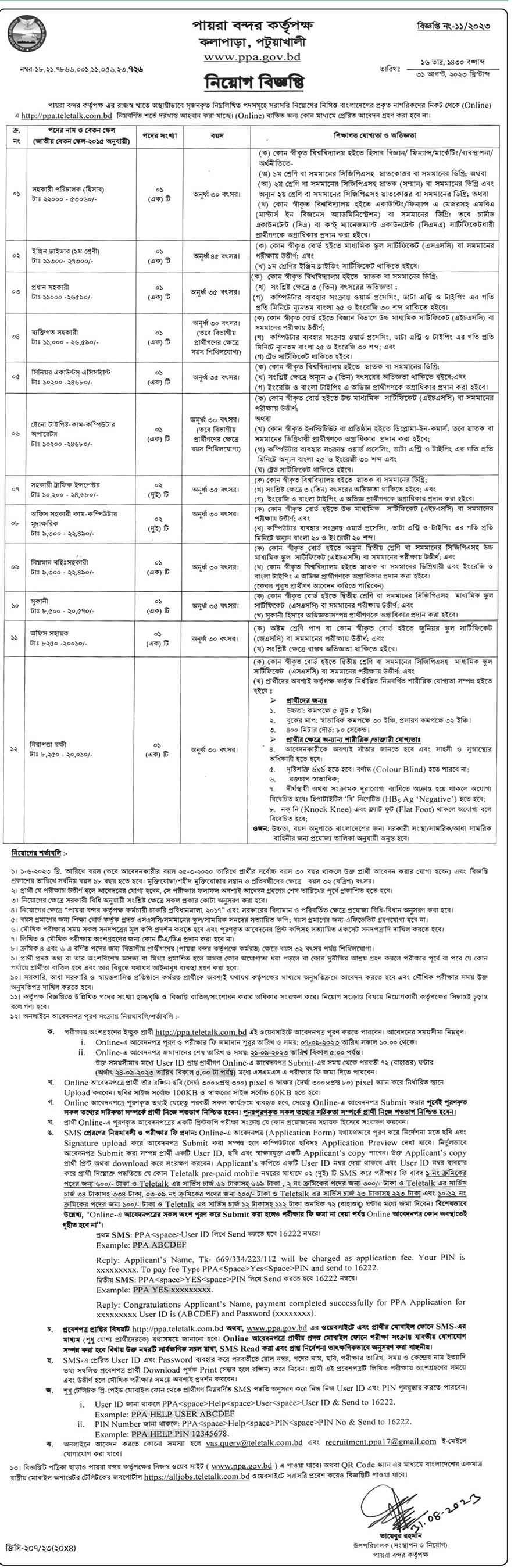 Payra port authority has created some temporary post against some required jobs under revenue section. Name of the position, Competency, Salary, etc are mentioned below: