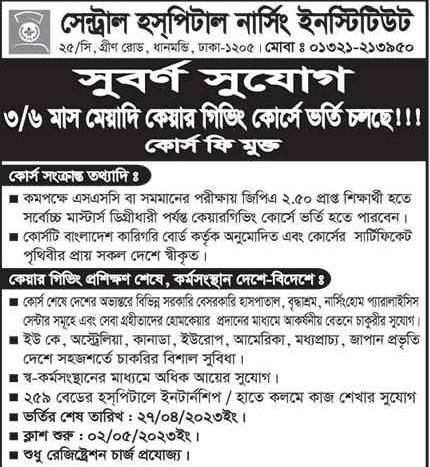 Central Hospital Nursing Institute is inviting applications from interested doctors for the admission of Care Giving Course.